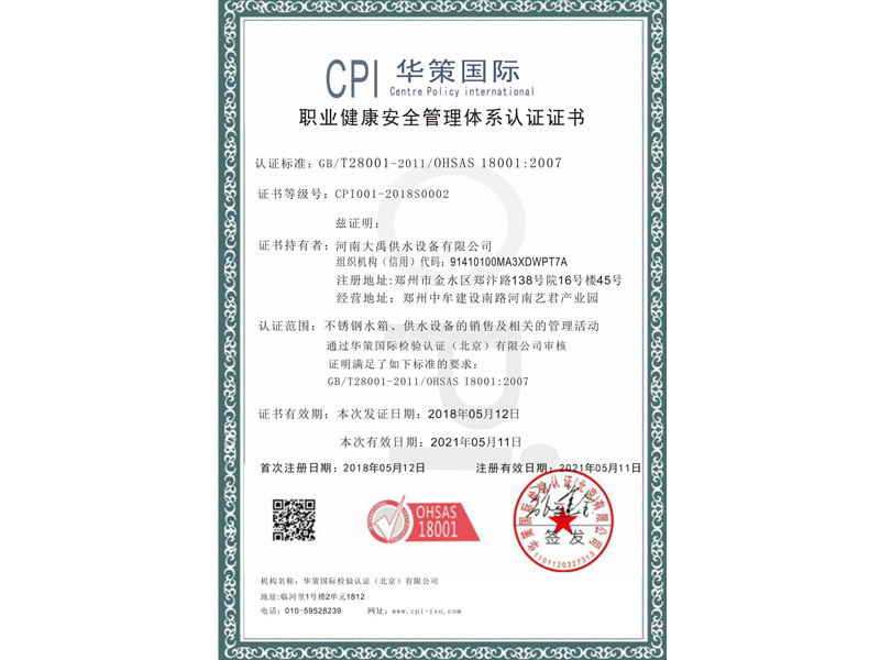 河南大禹供水設備有限公司是一家不銹鋼水箱及供水設備的設計、制作、安裝和調試的專業公司,主要產品有不銹鋼保溫水箱,組合式不銹鋼水箱、生活供水水箱、臥式水箱、消防水箱、圓柱形水箱、無負壓變頻供水設備、消防增壓穩壓設備、恒壓變頻供水設備等,公司擁有先進的生產設備、雄厚的技術力量、穩定的管理隊伍和完善的服務體系,集開發、設計、生產、安裝、售后服務于一體,為客戶提供全方位的優質服務。廣泛用于工礦、單位、住宅···